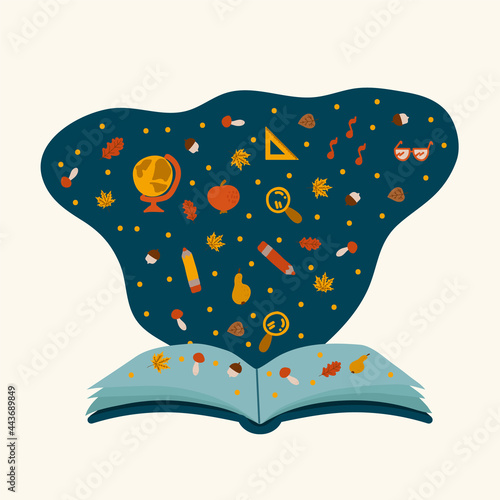 Открытая книга со звездным небом, планетами солнечной системы, вращающимися вокруг Солнца, зодиакальными созвездиями, векторная иллюстрация в стиле бумажного искусства. Астрология, астрономическая наука, воображение, предсказания гороскопа.