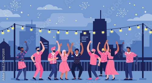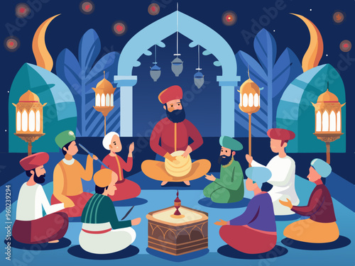 Сцена оперного театра с красными занавесами. Симфонический оркестр, выступающий на сцене, векторная иллюстрация. Дирижер и музыканты играют на скрипке, контрабасе, флейте, тубе. Концерт классической музыки.