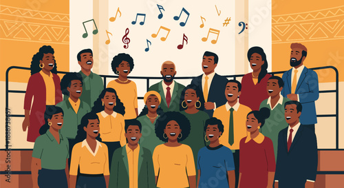 Сцена оперного театра с красными занавесами. Музыканты и актеры-певцы, выступающие на сцене перед аудиторией, векторная иллюстрация. Представление в оперном театре, развлекательная программа.