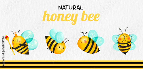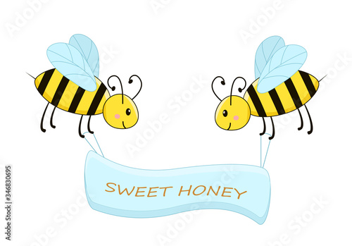 Значок органического меда. Векторная наклейка, этикетка или логотип с текстом заголовка, изображением пчелы и сладкого нектара в банке на белом фоне.