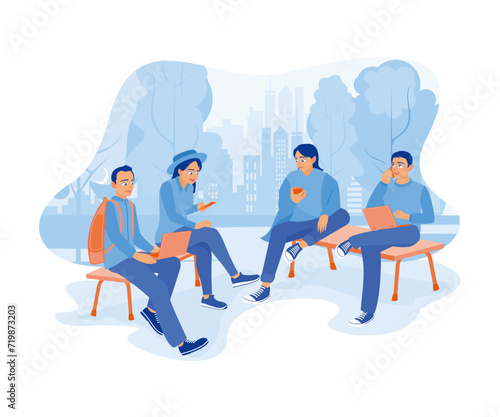 Набор зимних развлечений на открытом воздухе, плоская векторная изолированная иллюстрация. Счастливые люди играют в снежки, катаются на санях, тюбингах, коньках, выгуливают собак в городском парке. Зимние забавы.