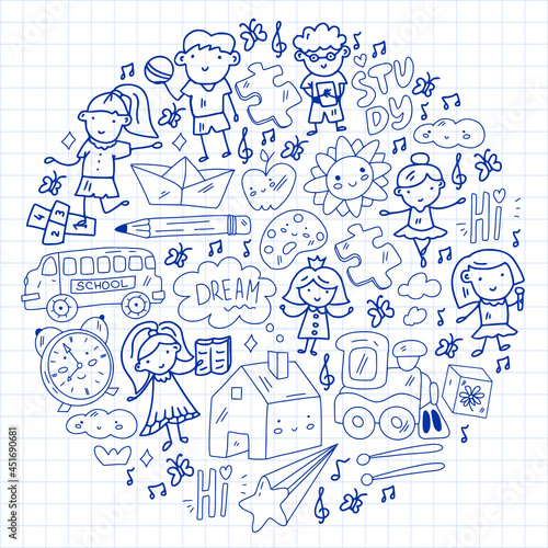 Зимняя векторная иллюстрация. Современный элемент дизайна в плоском стиле thin line art в форме снеговика с символами зимних развлечений, значками для баннеров веб-сайтов и печатных материалов.