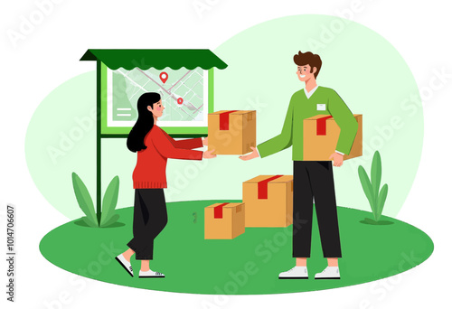 Шаблон плаката на открытом воздухе на рабочем месте. Деловые люди, работающие на портативных компьютерах, планшетах за пределами офиса, в городском парке, плоская векторная иллюстрация. Открытые офисные помещения. Удаленная работа и фриланс.