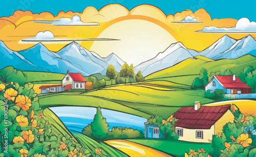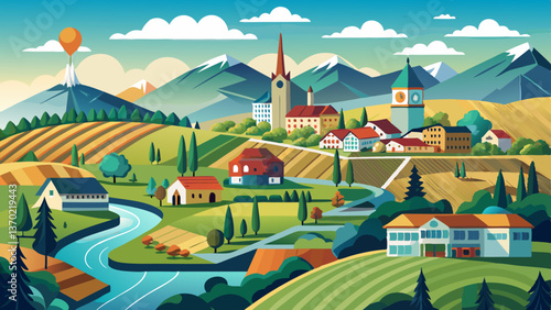 Занятия йогой на открытом воздухе в городском парке. Векторная иллюстрация концепции упражнений йоги. Молодые женщины тренируются вместе с инструктором-мужчиной, героями мультфильмов. Здоровый образ жизни, занятия спортом.