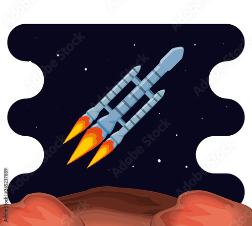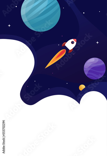 Запуск космического корабля, векторная иллюстрация в стиле бумажного искусства. Вырезанная из бумаги летящая красная ракета, ночное небо со звездами, пушистые облака. Космические путешествия, исследование, полет в открытый космос, запуск бизнес-проекта.