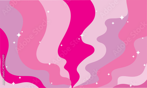 Кисть для рисования и мазок цветной кистью. Векторная иллюстрация, вырезанная из бумаги. Слои краски розового, фиолетового, фиолетового цветов.