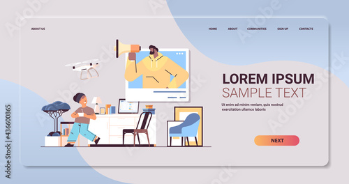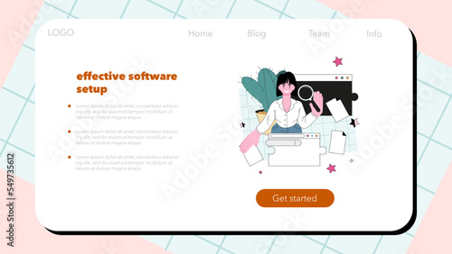 Шаблон целевой страницы Painter. Векторная концепция дизайна в плоском стиле для веб-сайта художника и разработки мобильных сайтов. Человеческая рука держит кисть, палитру, мольберт, холст, тюбик с краской. Услуги по художественной росписи