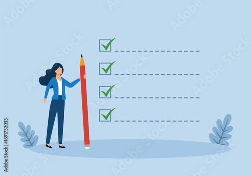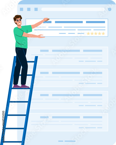 Женщина-художник с малярным валиком, стоящая на лестнице, векторная плоская иллюстрация, изолированная на белом фоне. Покраска стен, ремонт дома, квартиры, услуги по реконструкции и ремонту.