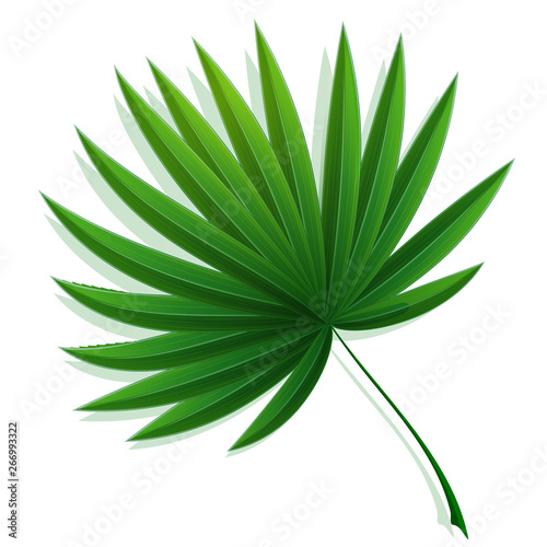 Вектор листьев пальмы. Значок тропической листвы. Листья тропических джунглей выделены на белом фоне. Абстрактная часть растения ярко-зеленого цвета. Гавайская райская флора