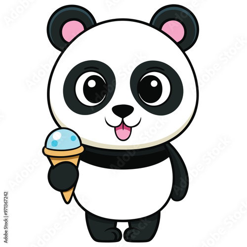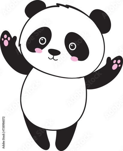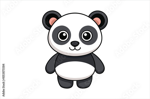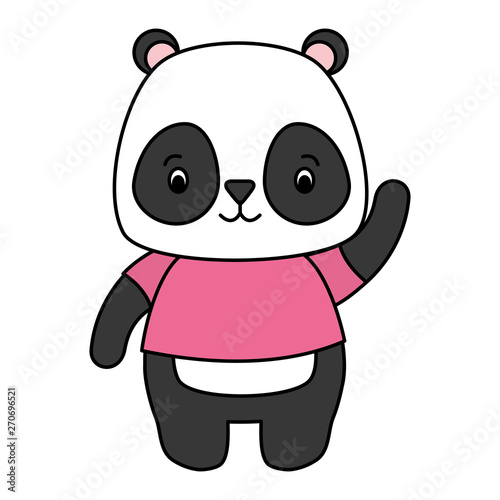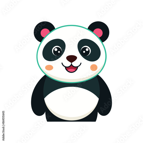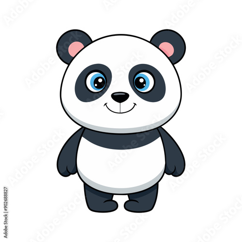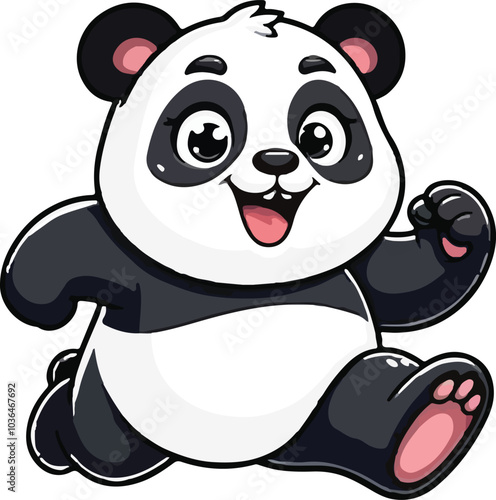 Панда тренируется с векторной иконкой с гантелями. Мультяшное животное наслаждается упражнениями в тренажерном зале. Симпатичный медведь-спортсмен, качающий мышцы, выделен на белом фоне
