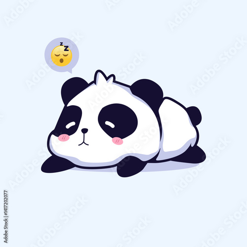 Панда на летнем пляже в векторе. Кавайный мультфильм с изображением забавного медведя. Ленивый милый персонаж, загорающий и спящий, отдыхает на клетчатом одеяле, изолированном на белом фоне