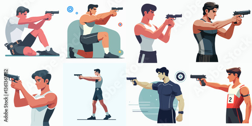 Набор значков папарацци. Векторная иллюстрация профессиональных фотографов-мужчин и женщин в разных позах, делающих снимки с использованием профессионального оборудования.