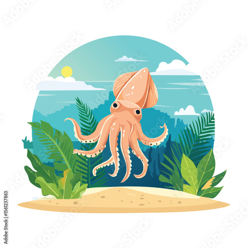 Вырезанные из бумаги силуэты динозавров и природный пейзаж. Паразавролоф, динозавр брахиозавр и летающая рептилия птеранодон, векторная иллюстрация. Образование детей. Археология, история.
