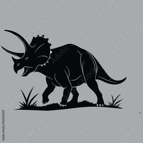 Силуэт гигантского динозавра трицератопса с бронтозавром, динозавром брахиозавром и летающей рептилией птеранодоном. Векторная иллюстрация в стиле бумажного искусства. Образование детей. Археология, история.