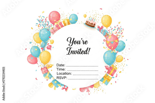 Вырезанные из бумаги сердечки, воздушные шары, цветы, ленты, вылетающие из мегафона. Векторная иллюстрация в стиле бумажного художественного ремесла. Фон с Днем Святого Валентина с пробелом для копирования.
