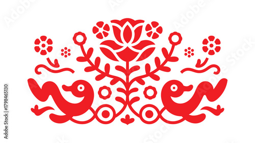 Вырезанное из бумаги красное сердце с белыми ветвями растений, векторная иллюстрация. Шаблон открытки на День Святого Валентина.