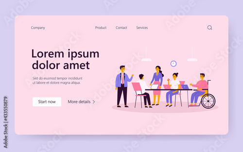 Спортсмены-инвалиды в инвалидной коляске с протезом ноги пересекают финишную черту, векторная иллюстрация. Гоночные инвалидные коляски, концепция паралимпийских игр для веб-баннера, страницы веб-сайта и т.д.