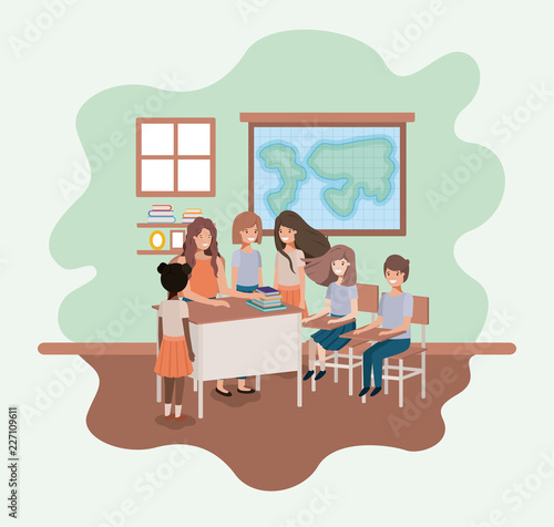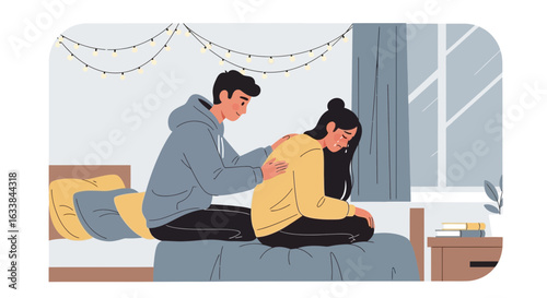 Счастливая любящая мать расчесывает волосы своей дочери, векторная плоская иллюстрация. Счастливое детство и материнство, родительская любовь и забота о детях, отношения между родителями и детьми.