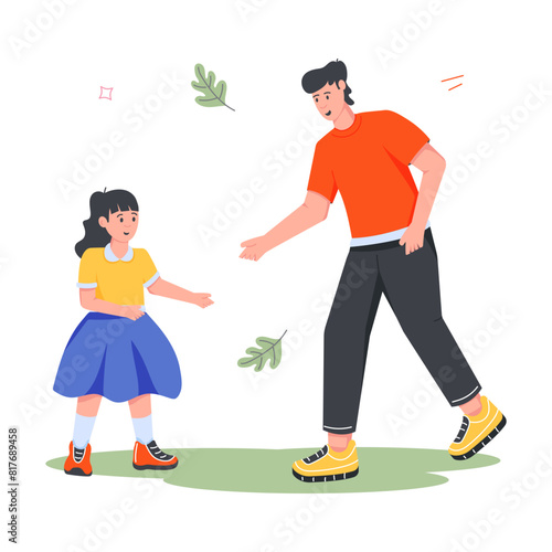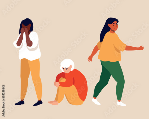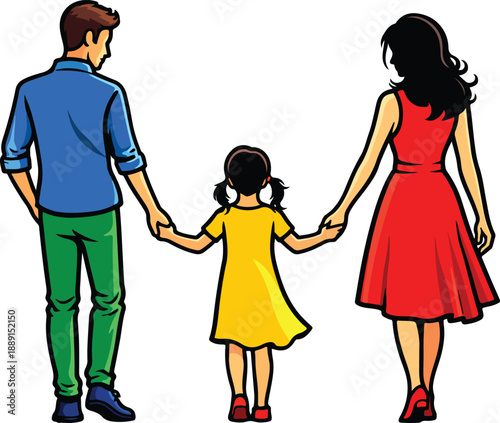 Векторная иллюстрация развода родителей. Плоская карикатура на хмурую расстроенную женщину-жену с несчастной дочерью-ребенком, оставляющей разочарованного депрессивного мужчину-мужа изолированным на белом фоне. Концепция семейного кризиса