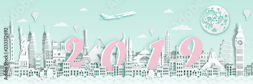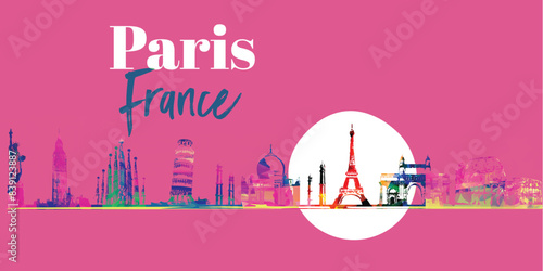 Город Париж, Франция, векторная иллюстрация в стиле бумажного искусства. Триумфальная арка, Эйфелева башня, собор Парижской Богоматери, всемирно известные достопримечательности и туристические аттракционы Парижа. Путешествия по всему миру.