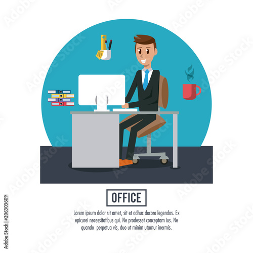 Векторная иллюстрация мужчины-авиапутешественника с билетами и чемоданом в аэропорту. Элемент дизайна в стиле пассажирской квартиры.