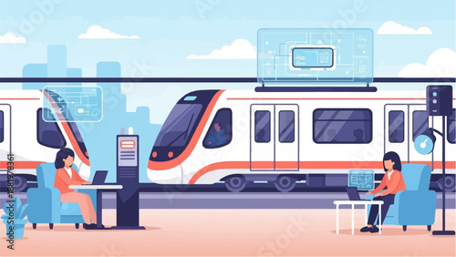 Пассажиры, покупающие билеты на автовокзале, в ожидании автобуса, плоская векторная иллюстрация. Остановка междугороднего автобуса с туристами. Транзитные услуги.