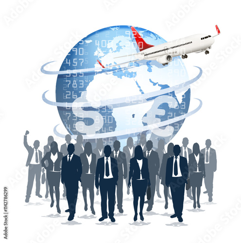 Пассажиры в медицинских масках входят на борт самолета с векторной иконкой на изолированном фоне. Концепция правил боя.