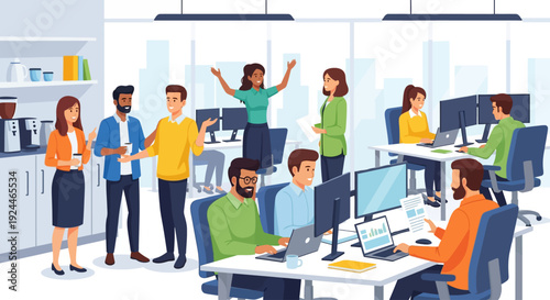 Пассажиры, путешествующие на городском автобусе, плоская векторная иллюстрация. Персонажи женского и мужского пола стоят, сидят, читают, разговаривают. Люди едут на работу и с работы. Современный общественный транспорт. Ежедневные поездки на работу и обратно.