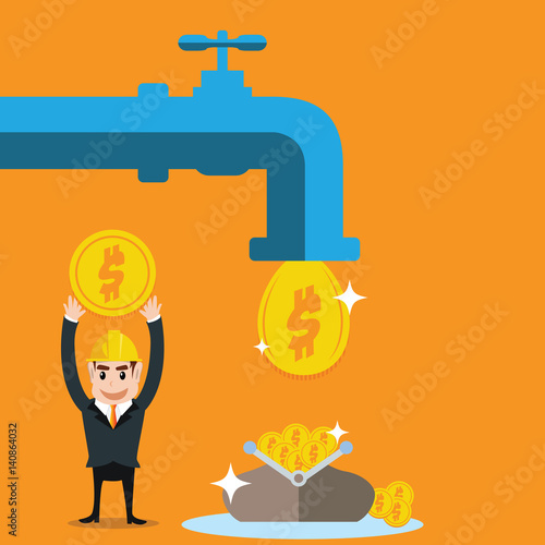 Концепция пассивного дохода. Мультяшная векторная иллюстрация. Нажмите капелькой золотого доллара.