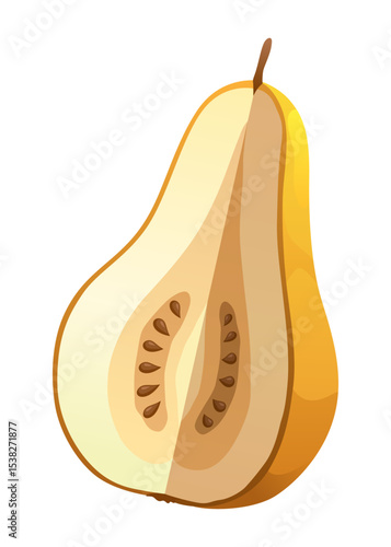 Вектор цельных плодов груши. Значок пищевой иллюстрации. Спелая сладкая органическая витаминная пища, выделенная на белом фоне