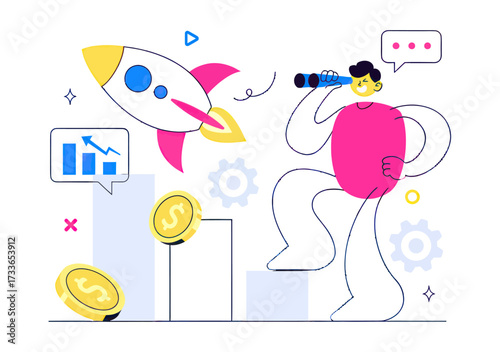 Счастливая пожилая пара, планирующая пенсию, векторная плоская иллюстрация. Пенсионный план, концепция финансовых сбережений для веб-баннера, страницы веб-сайта и т.д.