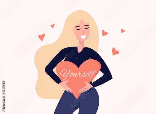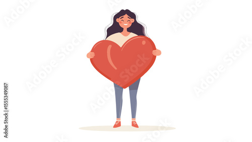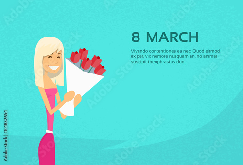 Векторная иллюстрация счастливой молодой женщины с букетом цветов. Концепция людей и отношений элемент дизайна в плоском стиле, значок, выделенный на белом фоне.
