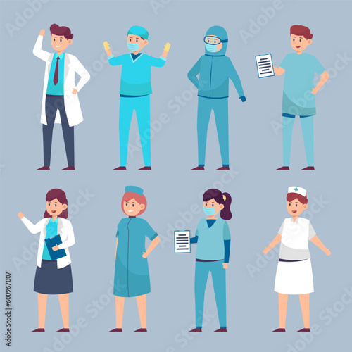 Пациенты, персонажи мужского и женского пола, показывающие знак рукой "Стоп" врачу со шприцем, плоская векторная иллюстрация. Люди, принимающие вакцину против ваксса, отказываются от инъекции вакцины против covid-19. Нерешительность в отношении вакцины. Анти-вакс.