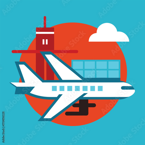 Люди садятся в самолет в терминале аэропорта. Путешествие по концепции полета векторная иллюстрация. Пассажиры ждут на трапе, чтобы подняться в салон самолета.