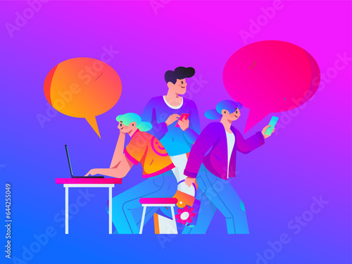 Люди покупают и едят еду в столовой столовой, векторная плоская иллюстрация. Персонажи мужского и женского пола обедают, перекусывают в кафе, фуд-корте, кафетерии, студенческой столовой или столовой для персонала компании.