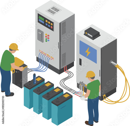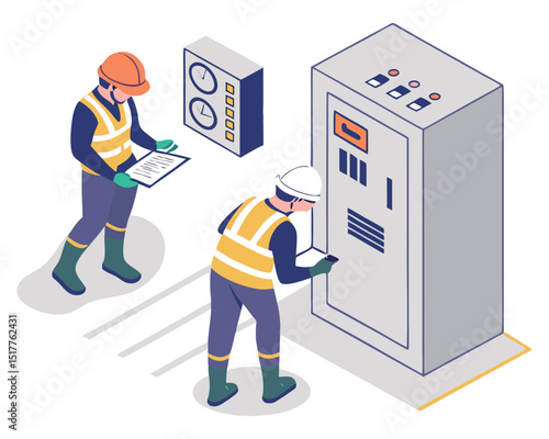 Персонажи мужского пола, покупающие кофейный напиток из автомата по продаже кофе, плоская векторная изометрическая иллюстрация. Технология торговых автоматов.