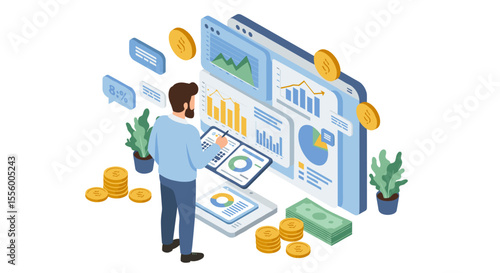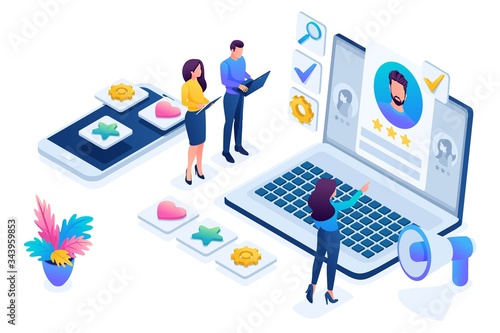 Люди ловят жуков на экране портативного компьютера, плоская векторная изометрическая иллюстрация. Тестирование программного обеспечения, контроль качества, отладка.