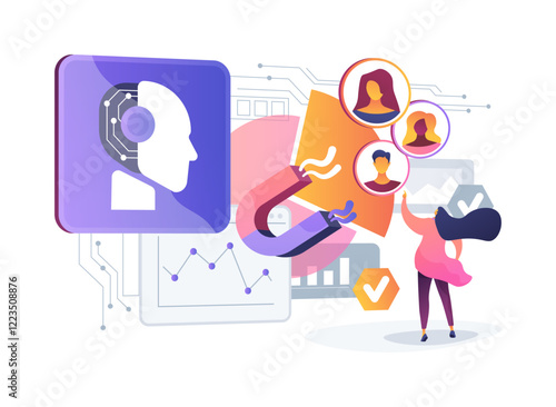 Крошечные персонажи мужского и женского пола едят сахар, сладкое, пшеничную пищу, плоская векторная иллюстрация. Гигантский кусок хлеба, пончик, леденец на палочке, хот-дог, нездоровая пища с высоким содержанием углеводов. Углеводное питание.