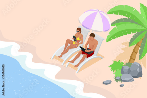 Бассейн с горячими источниками. Люди, наслаждающиеся термальной водой спа, плоская векторная иллюстрация. Счастливая пара принимает ванну на открытом воздухе. Онсен, японский курорт с природными горячими источниками. Расслабьтесь, отдыхайте.
