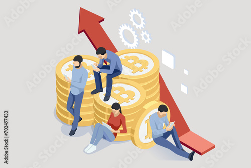 Люди, дающие деньги вору, киберпреступник с мобильного телефона, притягивающий наличные с помощью магнита, плоская векторная изометрическая иллюстрация. Мошенничество с кредитными картами, киберпреступность, финансовое мошенничество.