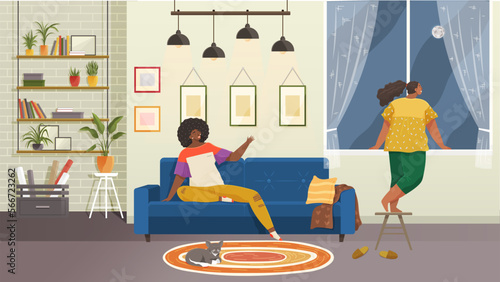 Рабочие, выращивающие растения каннабиса сатива, плоская векторная иллюстрация. Люди поливают, обрезают и собирают растения конопли. Ферма по выращиванию марихуаны. Легальный бизнес по выращиванию каннабиса. Индустрия выращивания сорняков.