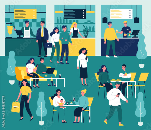 Люди в банке концепция векторной иллюстрации. Клиенты посещают банк, чтобы совершать платежи, снимать деньги в банкомате, вносить деньги на депозит и пользоваться сейфом.