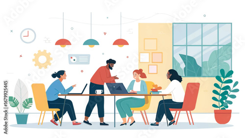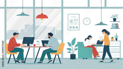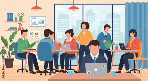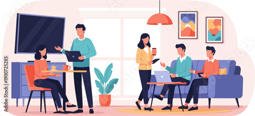 Люди в кафе работают и пьют кофе, концепция векторной иллюстрации. Клиенты покупают кофе в кафе-магазине.