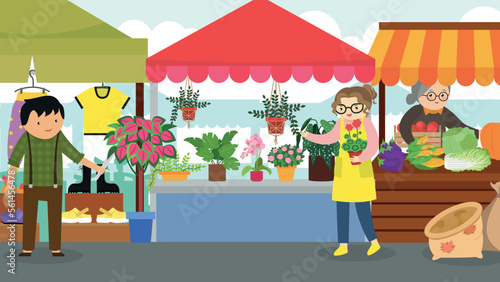 Люди, одетые в карнавальные костюмы Хэллоуина, прогуливающиеся по городскому парку, плоская векторная иллюстрация. Счастливого празднования вечеринки в честь Хэллоуина. Кошелек или жизнь.