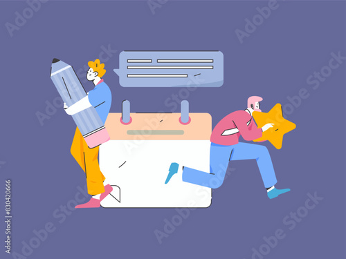 Диалоговые речевые пузыри с людьми, использующими портативные компьютеры, читающими книги внутри, плоская векторная иллюстрация. Деловой диалог, общение, онлайн-чат, беседа.