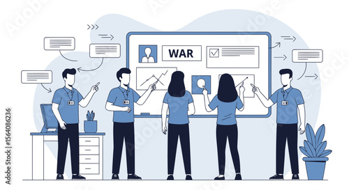 Люди в больнице, прием в медицинской клинике, плоская векторная иллюстрация. Пациенты в масках для лица проходят зону контроля температуры тела, ждут врача, записываются на прием к врачу, пьют воду.