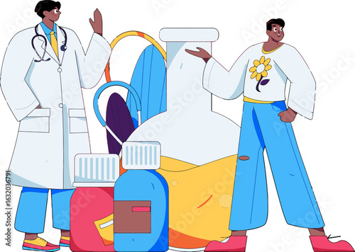 Люди в масках проверяют документы перед вылетом в аэропорту, векторная иконка на изолированном фоне. Концепция правил боя.