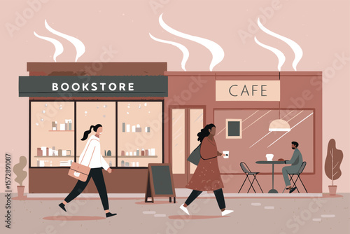 Люди в ресторане, плоская векторная иллюстрация. Официант раздает меню юной леди, счастливые пары посещают кафе, суши-бар. Азиатский ресторанный бизнес, обслуживание.