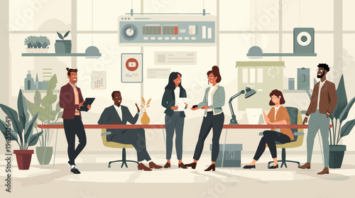 Люди в ресторане, плоская векторная иллюстрация. Шеф-повар готовит на кухне, официанты принимают заказ, подают еду, счастливая пара ест суши-роллы, сидя за столом. Азиатский ресторан, суши-бар бизнес.