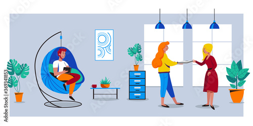 Люди в векторном плакате прачечной самообслуживания. Баннер интерьера прачечной.